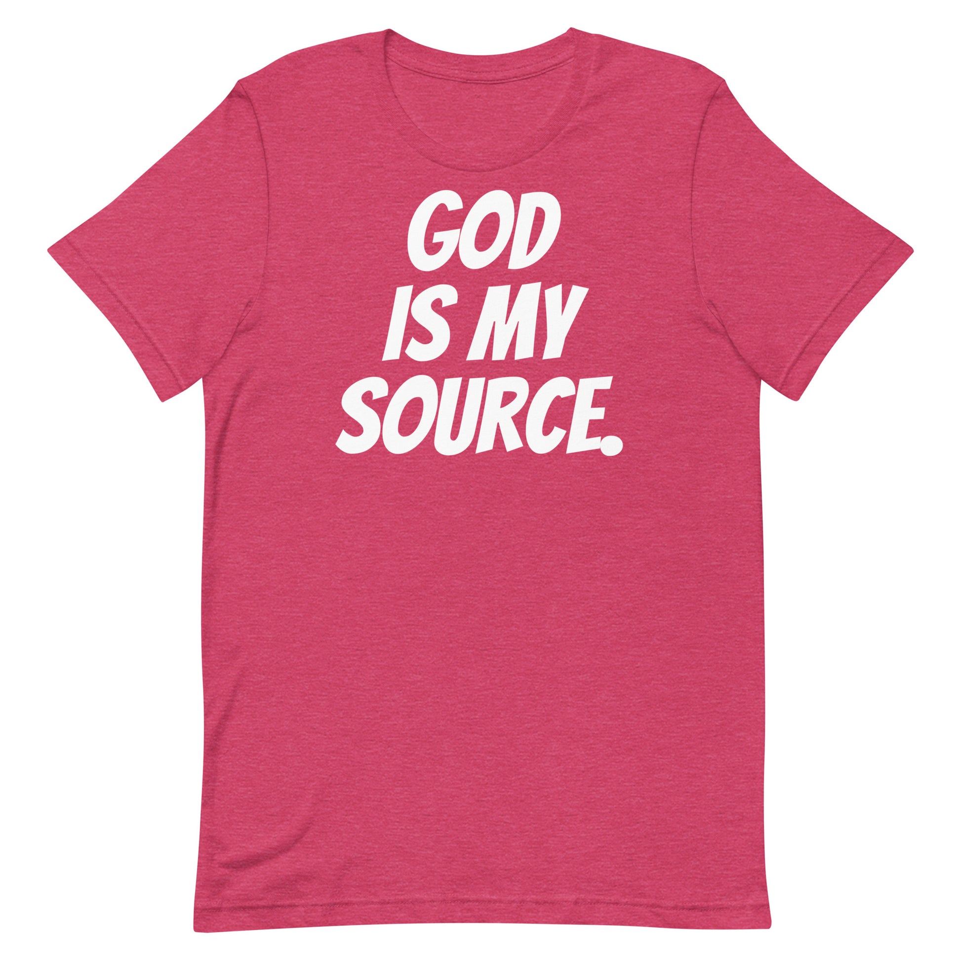 GOD IS MY SOURCE T-SHIRT - HEATHER PINK/WHITE